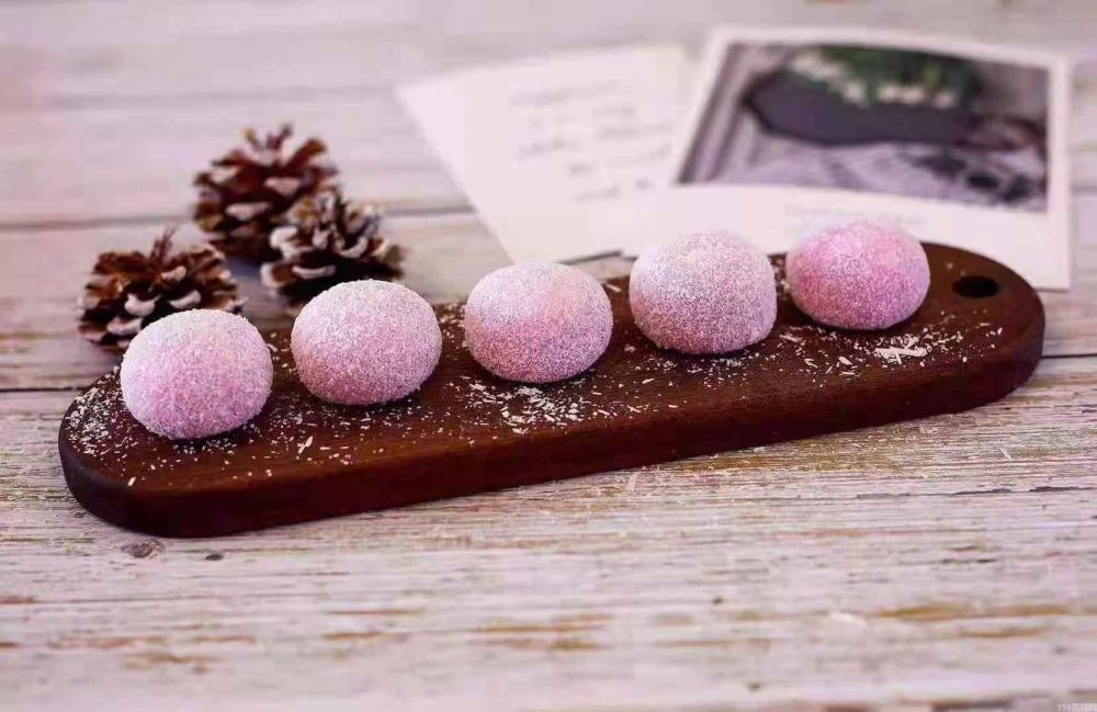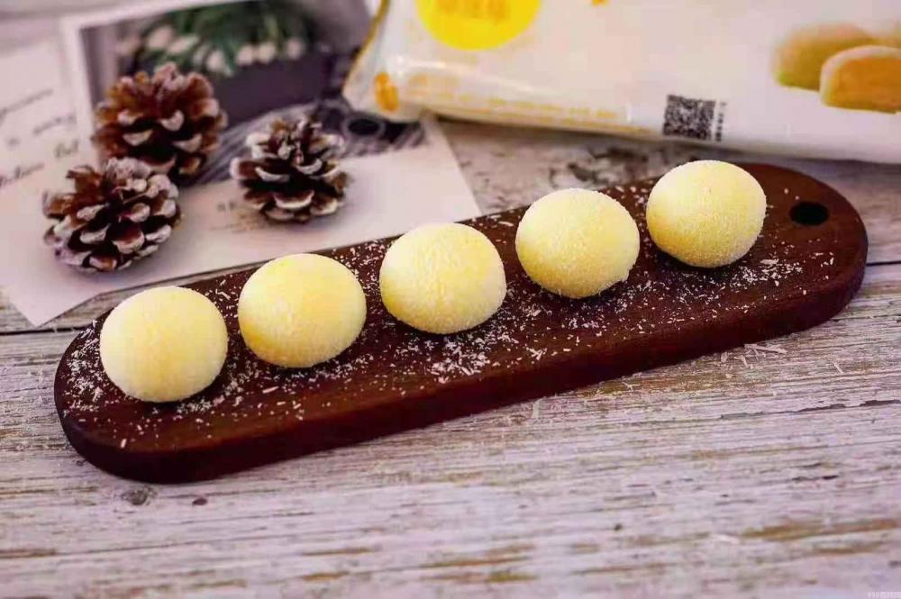 雪媚娘源自日本,原名为“大福”,又名升级版驴打滚儿,是日本的地道点心之一,外表皮是Q弹的雪媚娘冰皮,在日本它的馅料都是当季的真材实料的水果为主。 “雪媚娘”这个名字源于日本当地发明各种草莓大福的一位夫人,而我们制作的雪媚娘也是她的代表作之一。 雪媚娘细白软糯,第一口咬到的是特别Q弹有嚼劲的冰皮,里面是奶香怡人的淡奶油,裹着好吃的水果粒,比如芒果、草莓、奥利奥等。 酸酸甜甜、口感丰富。 “雪媚娘”冷藏后的口感更佳,轻轻一口下去,细软中还带着隐隐的甜意和凉意。西茄雪媚娘,沿用轻施手粉风格,内馅采用鲜果,是传统雪媚娘的最重要流派。