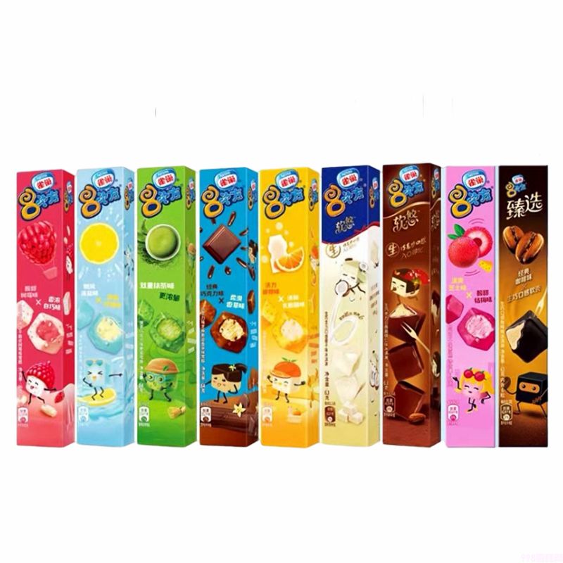 【原料与配料】:饮用水、代可可脂白巧克力、植物油、白砂糖、葡萄糖浆、乳清粉、麦芽糊精、乳粉、黑芝麻、淀粉、食品添加剂、着色剂、食用香精。黑芝麻的添加量不少于0.7%,巧克力味脆皮的添加量不少于20%。可能含有微量的花生。