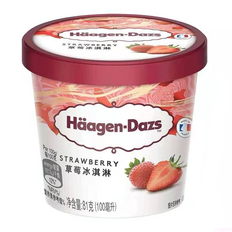 品牌: 哈根达斯(Haagen-Dazs) 商品名称:哈根达斯冰淇淋 草莓口味 81g 商品编号:2962990 商品毛重:81g 商品产地:法国 脂肪含量:中(3g-23g/100g固体) 蛋白质含量:低(<5g/100g固体) 热量:高(>300卡/100g) 包装形式:单支装 净含量:300g以下 国产/进口:进口